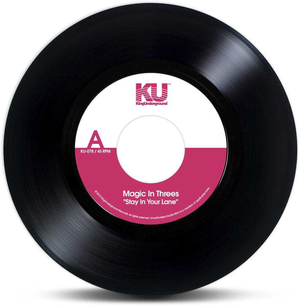 KingUnderground is proud to present Magic in Threes "Stay In Your Lane" - a special edition, official Record Store Day 2020 7" vinyl. Â The record contains 2 songs, one of which was made exclusively for RSD 2020. It's pressed on a dinked 7" vinyl at 45 RPM. Â Hailing from Nashville, Tennessee the smoked out instrumentalist trio Magic In Threes are highly influenced by library records, old film soundtracks, and hip hop tapes. They were formed in 2010 as a side project to their work with DeRobert & The Half-Truths. Following a long line of solid and well-received releases on Nashville's own G.E.D Soul Records - Magic in Threes have now released several 45s and an album on KingUnderground Records, with a new album in the works.